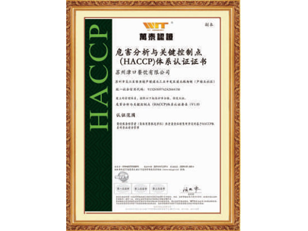 危害分析與關(guān)鍵控制點(diǎn)(HACCP)體系認(rèn)證證書(shū)